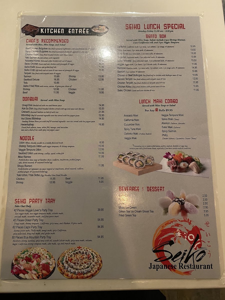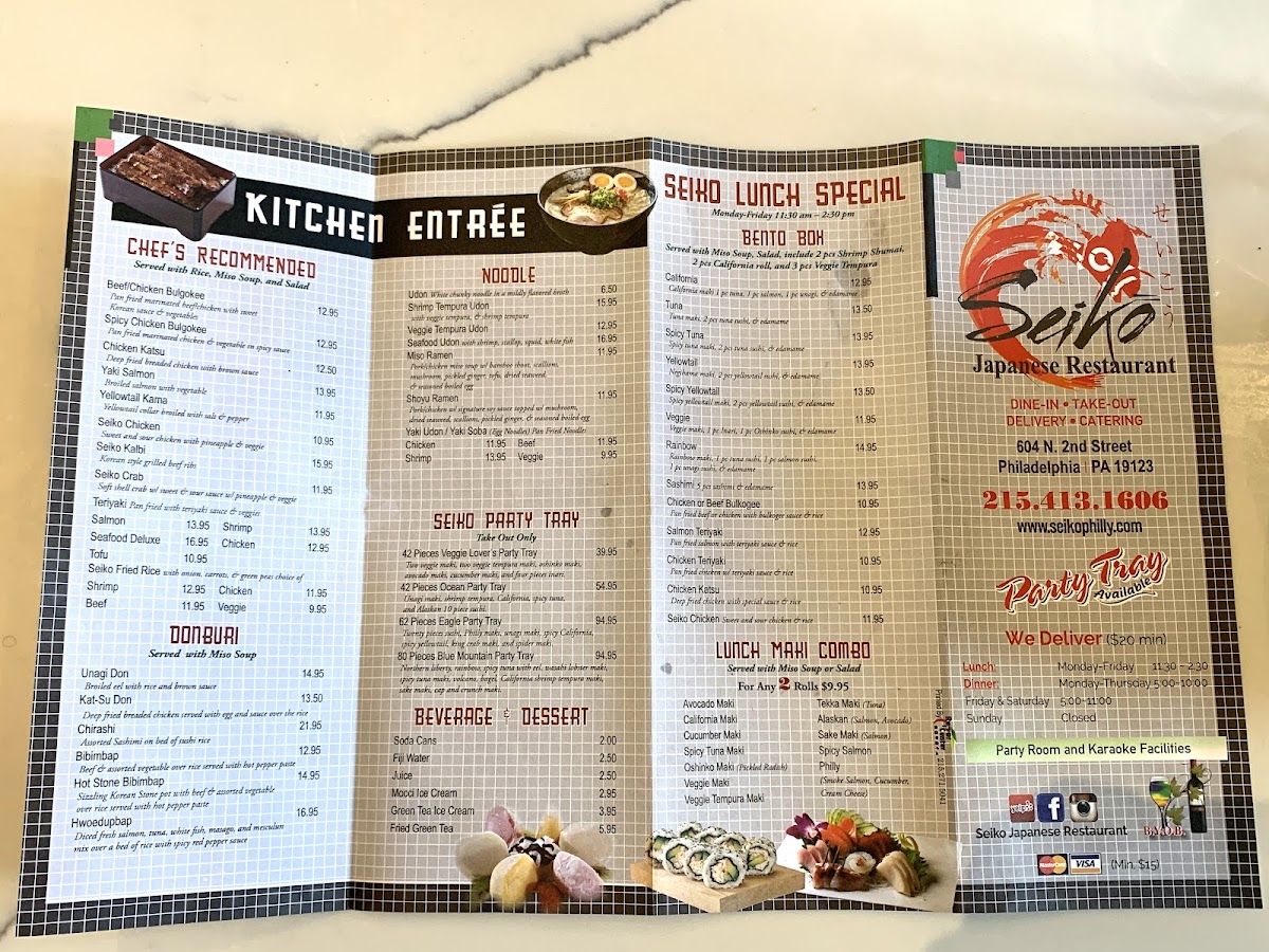 When you're craving authentic Japanese cuisine, look no further than the Seiko Japanese Restaurant Menu. Situated in the heart of Philadelphia, this cozy spot serves up a delicious array of dishes, from sushi rolls crafted with the freshest fish to savory ramen that’s perfect for any occasion. Whether you're in the mood for something light like a crisp salad or want to indulge in a warm bowl of miso soup, the menu has something for everyone. You can also enjoy specialty rolls that are unique to Seiko, offering bold flavors and a creative twist on traditional Japanese favorites. For those who love a little variety, there are also tempting options like teriyaki, tempura, and grilled seafood. Each dish is prepared with care, ensuring a delightful experience with every bite.